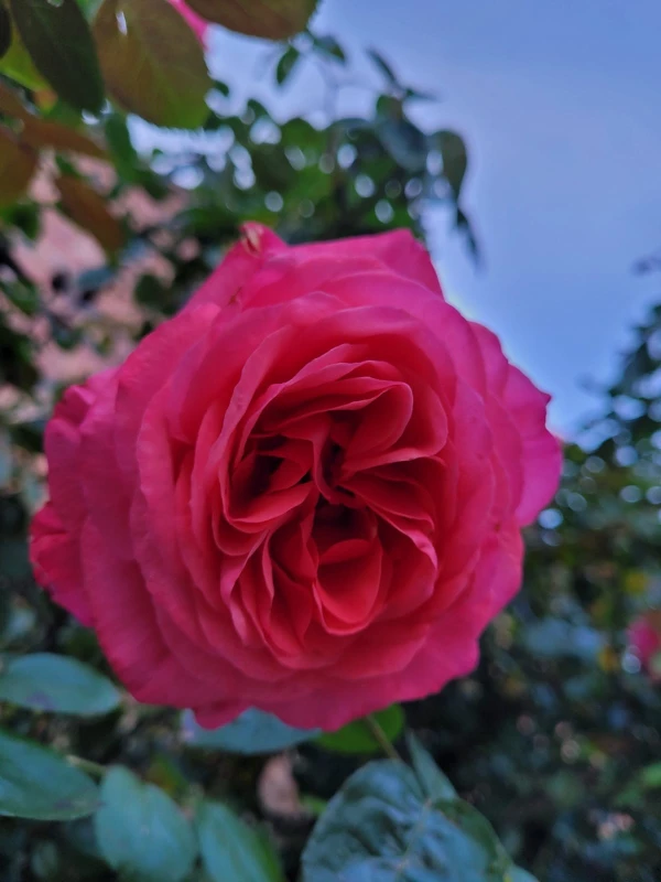 C'est un rosier très original avec ses pétales de couleur rose carminé au revers argenté. Son feuillage est vert clair. La rose a une forme en coupe, son nombre de pétale s'élève à 40 et son diamètre mesure entre 8 à 10 cm. La plante a un port grimpant et érigé, sa végétation est forte. Aussi, ce rosier a une floraison remontante et son inflorescence se fait en grappes de 1 à 3 fleurs.