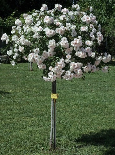 Les tiges et pleureurs sont des rosiers greffés non pas au niveau du sol, mais à une hauteur variable de 0,60 à 1,40 m. Ils forment ainsi un petit « arbre » avec un tronc qu'il convient (comme la couronne) de protéger contre le froid en hiver.