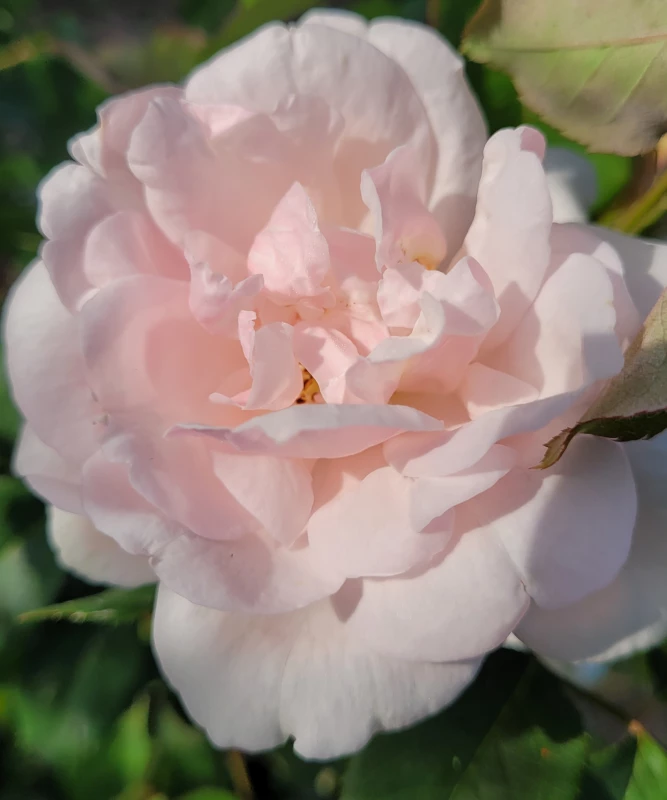 Les grandes fleurs doubles, rose clair presque blanc, dégagent un intense parfum de fruit et de thé.