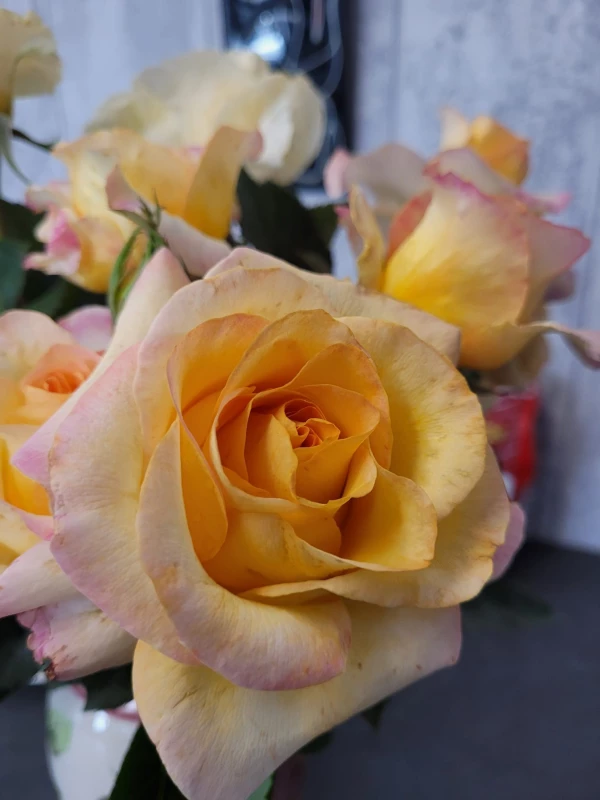 IDENTITE Appellation commerciale : MONT SAINT ODILE® Désignation variétale : CODpipu Obtenteur : MARIE-FRANCOISE DORIEUX Editeur : DORIEUX GEORGE Classe : Rosier à grandes fleurs LA FLEUR Couleur : Rose jaune rosé Forme : En coupe Diamètre : 10 cm Nombre de pétales : 55 Parfum : Subtil LA PLANTE Port : Erigé Végétation : Forte Feuillage : Vert foncé brillant Résistance aux maladies : Bonne Inflorescence : 1 à 3 fleurs Floraison : Remontante Hauteur : 80-100 cm Période idéale de plantation : de Octobre à Mai Période de floraison : de Juin à Octobre Taille à la livraison : 30 à 40 cm UTILISATION Massif et paysager, ht