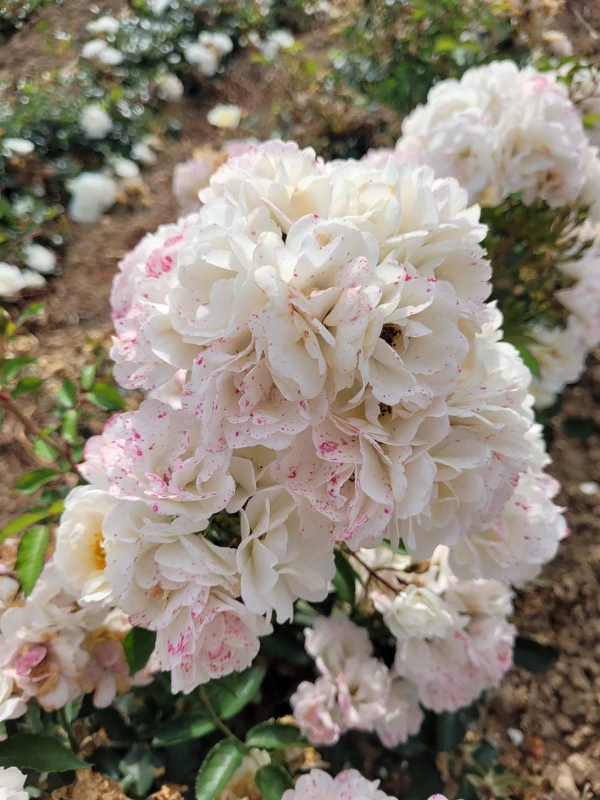 La Grande Motte est un rosier exceptionnel! Ses myriades de petites fleurs de couleur blanc crème rehaussé d’un jaune paille éclairent précocement dans la saisons les parterres et font le plaisir des butineurs par leur coté mellifères. Le buisson, compact et couvre sol, s’étale élégamment en plate bande ou en mélange avec d’autres espèces. Ne demandant que peu d’entretien (une taille par an) et pas de traitement phytosanitaire (pas de pesticide et pas de fongicide), c’est un rosier zéro phyto pour les futures espaces verts urbains.
