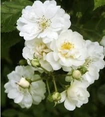 Diese Schlingrose hat kleine gefüllte weiße Blüten und grün gefärbtes Laub. Die Rosen sind sehr hell. Jede Blume misst einen Durchmesser von 2 bis 3 cm. Diese Rose ist regenfest. Die Pflanze ist kräftig, sehr reichblühend und blüht remontierend. Das Laub erweist sich als sehr gesund und immergrün. Diese Kletterpflanze hat einen leichten Moschusduft. Sie blüht von Juni bis Oktober.