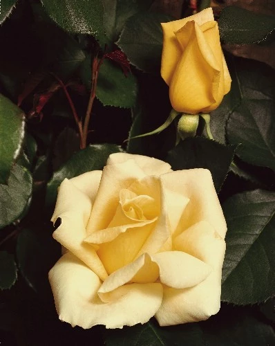 Diese Rose ist außergewöhnlich! Es ist eine große und schöne Blume von cremefarbener oder gelblich-weißer Farbe, während ihr Laub hellgrün ist. Jede Rose hat 33 Blütenblätter und einen Durchmesser von 11 cm. Es bildet an der Öffnung einen länglichen und kugelförmigen Knopf. Es ist eine sehr reichblühende Pflanze in zwei Zeiten. Seine Vegetation ist kräftig, dicht und aufrecht.
