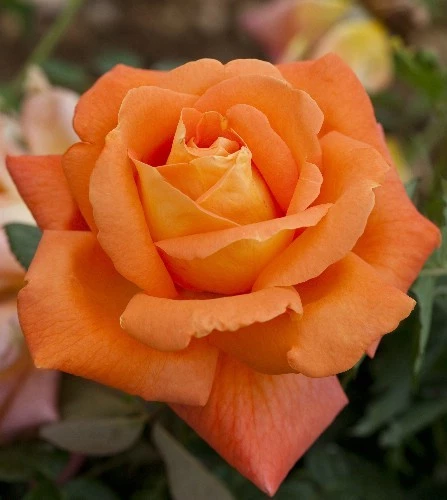 Es ist eine sehr schöne Rose, die von diesem großen Künstler ausgewählt wurde! Die Rose hat eine schöne orange Farbe mit dichtem, glänzend grünem Laub. Die Blume hat eine traditionelle Form, sie hat 20 Blütenblätter und misst 14 cm. Die Pflanze ist kräftig und blüht den ganzen Sommer über großzügig. Sie blüht vom Frühling bis zum Frost. Die Pflanze hat einen buschigen Wuchs und blüht vom Frühling bis zum Frost. Der Rosenstrauch duftet leicht.