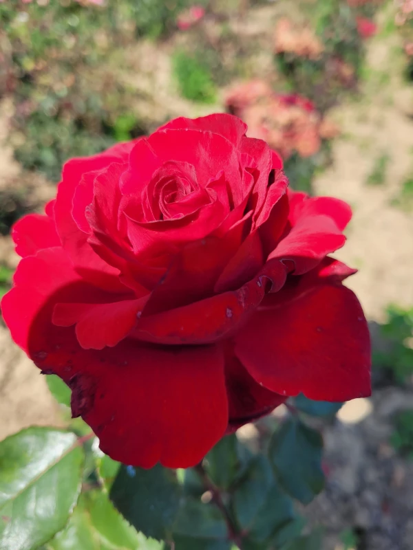 In Erinnerung an die wunderbare Schauspielerin ist diese große Rose originell durch die Kraft ihrer sehr samtigen blutroten Farbe mit glänzendem Laub. Die Rose bildet einen schönen eiförmigen Knopf, sie besteht aus 32 Blütenblättern und hat einen Durchmesser von 9 cm. Es ist eine Blume mit aufrechtem Port, sehr buschig und ohne Parfüm. Die Pflanze wächst mit mehreren einblütigen Stängeln am selben Zweig und ihre Blüte ist aufsteigend.