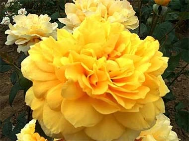 Dieser Rosenstrauch "Gold Glow" ist wunderschön. Die großen, leuchtenden Blüten sind goldgelb gefärbt. Die Blätter sind dunkelgrün und glänzend. Die Rose hat eine turbinale Form, ihre Blütenblätterzahl beträgt 120 Blütenblätter. Der Durchmesser der Blume misst 14 cm. Diese Pflanze hat einen buschigen und aufrechten Wuchs, ihre Vegetation ist kräftig. Die Blüte ist remontant und tritt von Mai bis zum Frost auf. Diese Rose hat einen süßen Duft.