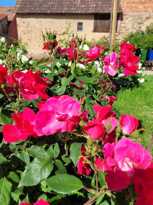 Diese Rose ist sehr dekorativ. Die Blütenblätter haben eine hellkardinalrote Farbe und das Laub ist grün und dicht. Die Rose hat eine zerknitterte Form, sie hat insgesamt 13 Blütenblätter. Der Durchmesser der Blüte beträgt 11 cm. Der Blütenstand besteht aus 6-15 Blüten. Der Port der Rose ist buschig und homogen. Diese Rose ist von Natur aus resistent gegen Krankheiten, Parasiten und Umweltverschmutzung, ohne Behandlungen oder Pestizide. Die Pflanze hat eine kontinuierliche Blüte. Sie profitiert auch von einer außergewöhnlichen Blütenpracht, sehr früh und sogar nach den ersten Frösten fast dauerhaft. Bemerkenswert ist die Wiederblüte im Herbst.