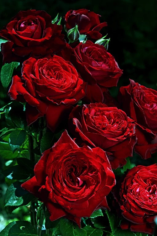 Diese Rose hat eine seltene Eleganz, gemischt mit Schlichtheit und Klassizismus. Im Sommer bietet es eine Fülle von Blumen auf einem kräftigen und soliden Rosenstrauch. Die Blume ist dunkelrot gefärbt und ihr Laub ist glänzend grün. Jede Rose hat eine Muschelform, besteht aus 120 Blütenblättern und misst 9 cm im Durchmesser. Die Pflanze hat einen buschigen Wuchs. Seine Blüte ist reichlich und regelmäßig und steigt von Mai bis zum Frost an. Der Blütenstand befindet sich in einer Gruppe von 1 bis 3 Blüten. Ohne Parfüm.