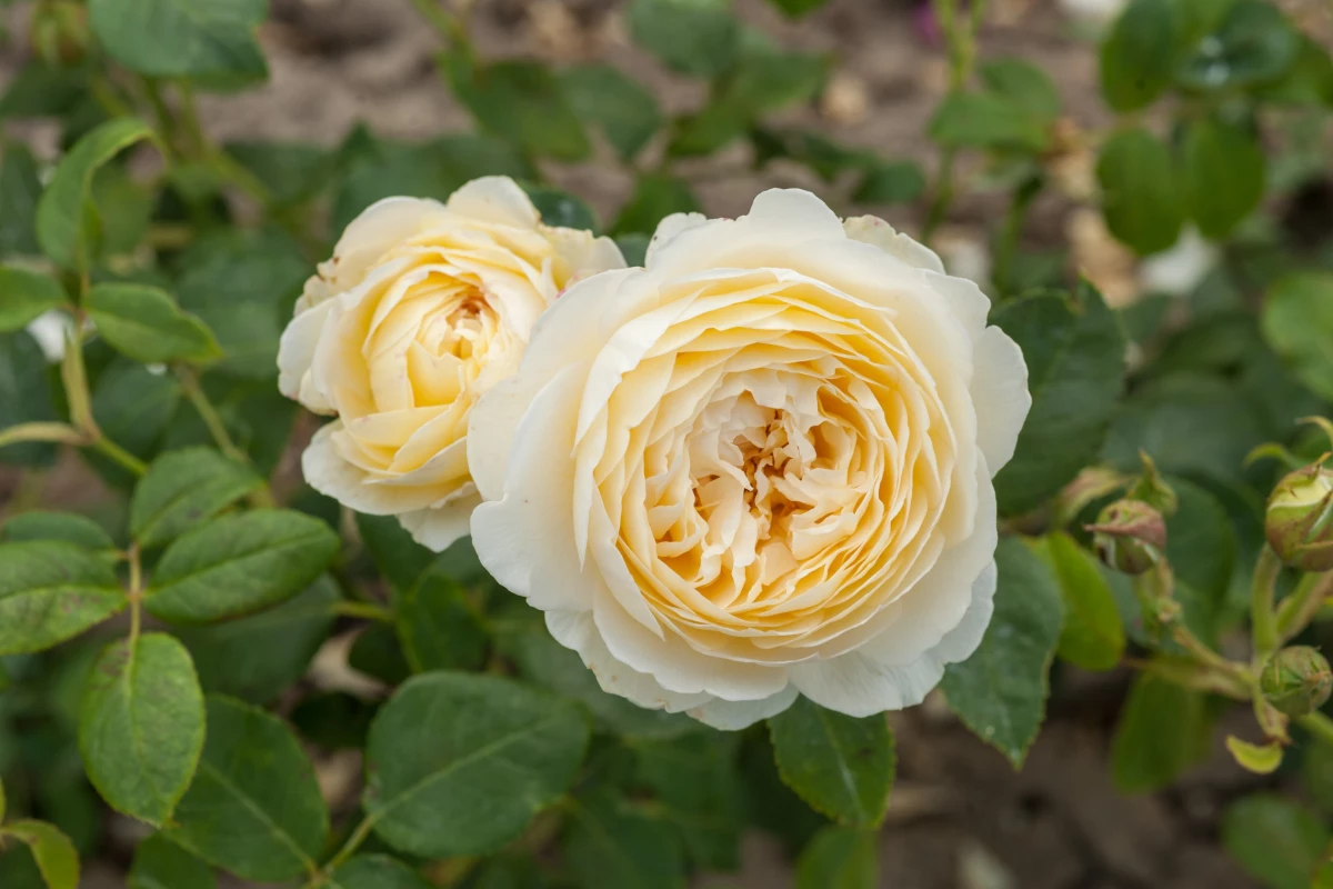 Dieser kräftige und aufrechte Rosenstrauch ist ein sehr guter Kletterer, sowohl in Bezug auf seine Schönheit als auch auf seine Leistung. Sie trägt ansprechende, becherförmige, blass zitronenfarbene Knospen, die sich allmählich zu großen, cremeweißen Blüten öffnen, deren äußere Blütenblätter ordentlich in konzentrischen Kreisen angeordnet sind.