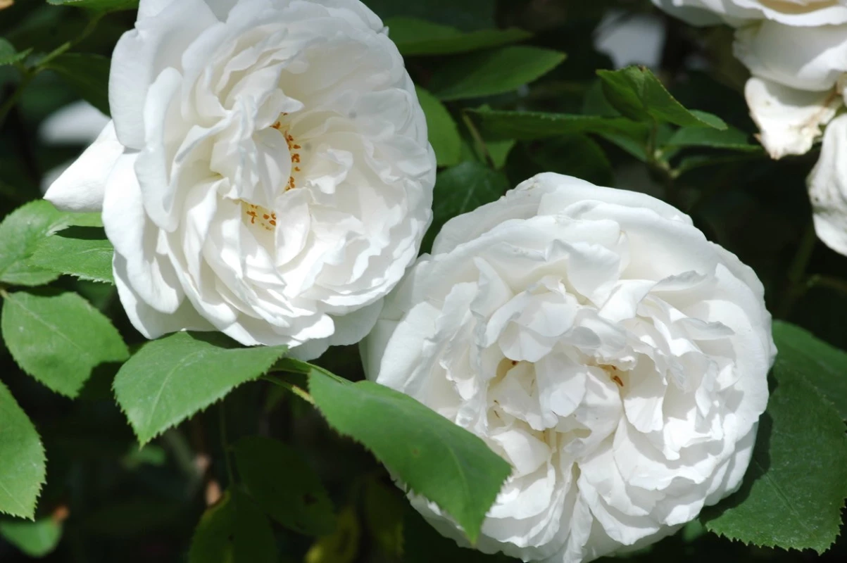 Ein weißer Sport von "Mary Rose", mit einem gelegentlichen Hauch von Rosa. Sie produziert eine Masse von duftenden, mittelgroßen, lockerblättrigen Rosetten und blüht den ganzen Sommer über in regelmäßigen Abständen. Es ist ein wohlgeformter Strauch mit verzweigtem, buschigem Wuchs und attraktivem Laub. Ihren Namen verdankt sie einer der schönsten Kathedralen Großbritanniens. David Austin, 1984.