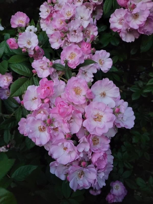 Merveille blüht einmal im Spätfrühling und Frühsommer, üppig in einer Explosion mehrerer Blumensträuße. Die üppige Blüte macht sie zu einer immer sehr beliebten Sorte. Ihre mittelgroßen, gefüllten Blüten bestehen aus 17 bis 25 hellen, gekräuselten Blütenblättern und weisen unterschiedliche Rosatöne auf.