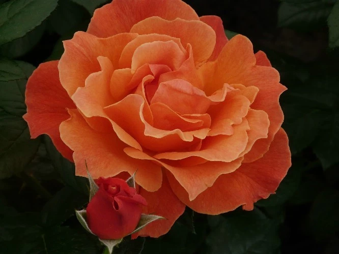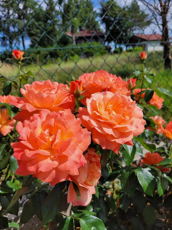 We present to you this superb Rosa "Fellowship" rose which is a British variety created by Harkness in 1992. This rose has a bright orange color with dense dark green foliage. Each rose is 10 cm in diameter, its shape is cupped and gathered in a bouquet. The "Fellowship" rose has a bushy, upright habit. Its flowering is remontant and its inflorescence is double. The rose has a light fragrance.