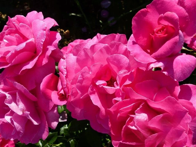 A great classic from Meilland, the colour rose bengal very bright. Rose with bushy habit, is ideal in the solid. Early flowering and spectacular in its abundance and continuity, dark green foliage mat, dense, and very resistant. A delicate perfume rose may. About 25/30 petals. Diameter flower 11 cm. Exists in climbing