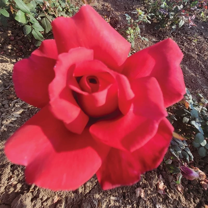 It is a very beautiful rose that is enhanced by its large flowers. Each rose is colored pinkish purple with matte dark green foliage. This flower has a cupped and turbinate shape, it is composed of 45 petals and measures 10 cm in diameter. The plant has a bushy habit and its vegetation is strong and regular. The rosebush has an abundant and remontant flowering. The inflorescence is solitary or in a cluster of 1 to 3 flowers. The fragrance is intense and sweet.