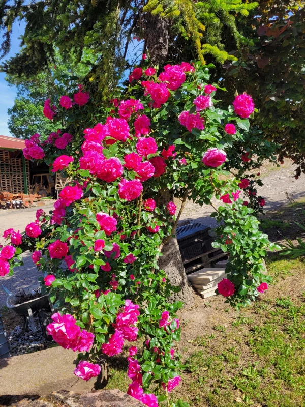 Beauty and elegance of flowers rose Bengal. Free-flowering and fragrant. Foliage glossy and healthy. Height : 2 m and more.